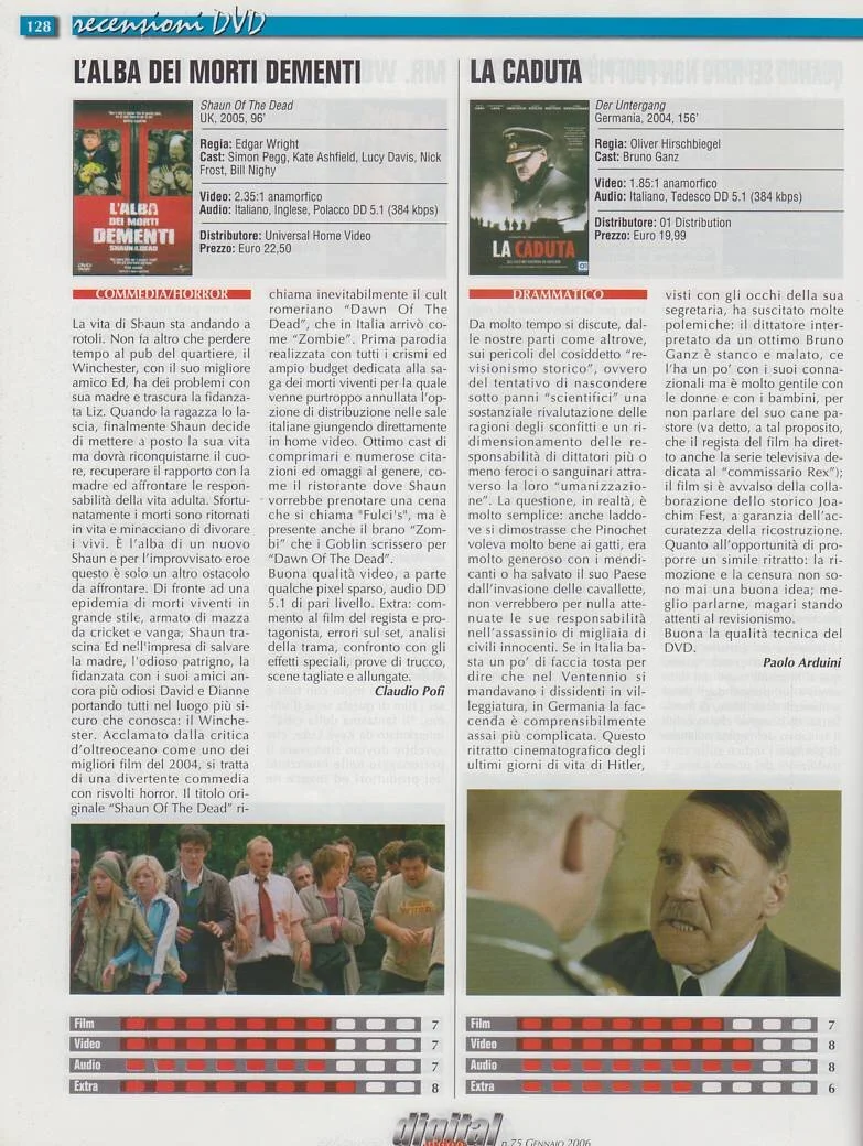 Editoriale cinema, recensioni LA Caduta, polar express, salvador allende, best, LA STORIA DEL CAMMELLO CHE PIANGE, il piccolo diavolo, articoli DEINTERLACING E SCALING, CANON XLH1, Speciale SDI, ADOBE PHOTOSHOP 4 e PREMIERE ELEMENTS 2, DI paolo Arduini - Pubblicati su Digital video Home theater n. 75 - gennaio 2006