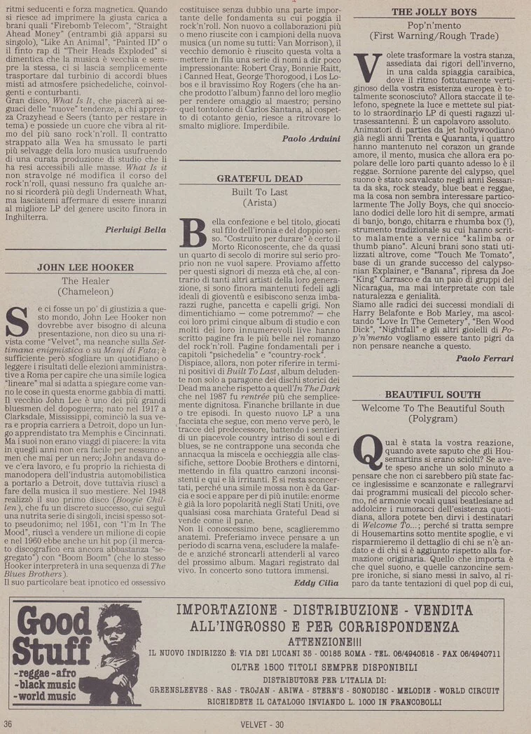 Les Hot Swing e recensione John Lee Hooker, di Paolo Arduini - Pubblicati su Velvet n15 - Dicembre 1989